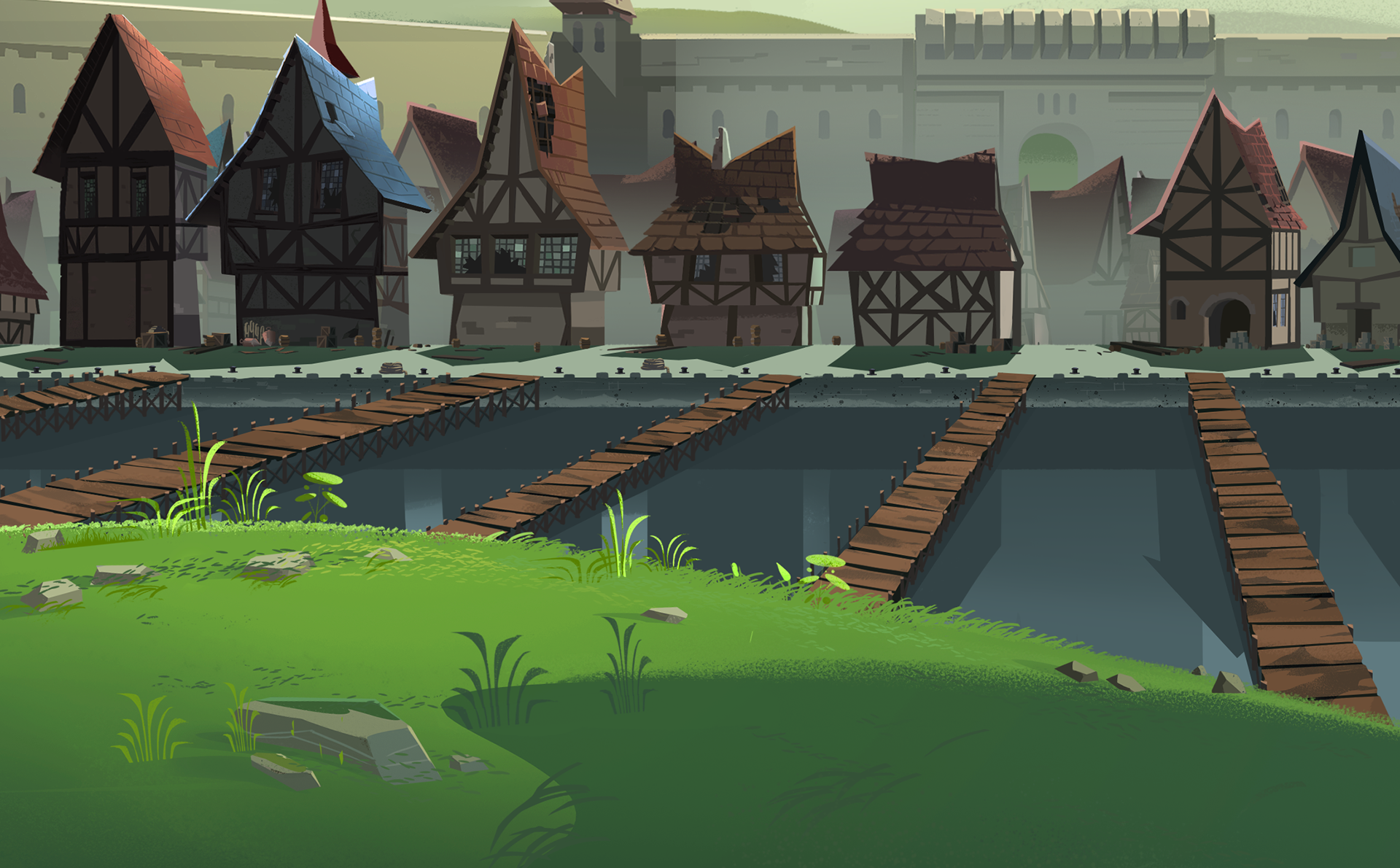 Background painting and Layout painting for Dandeloo - Upside down river